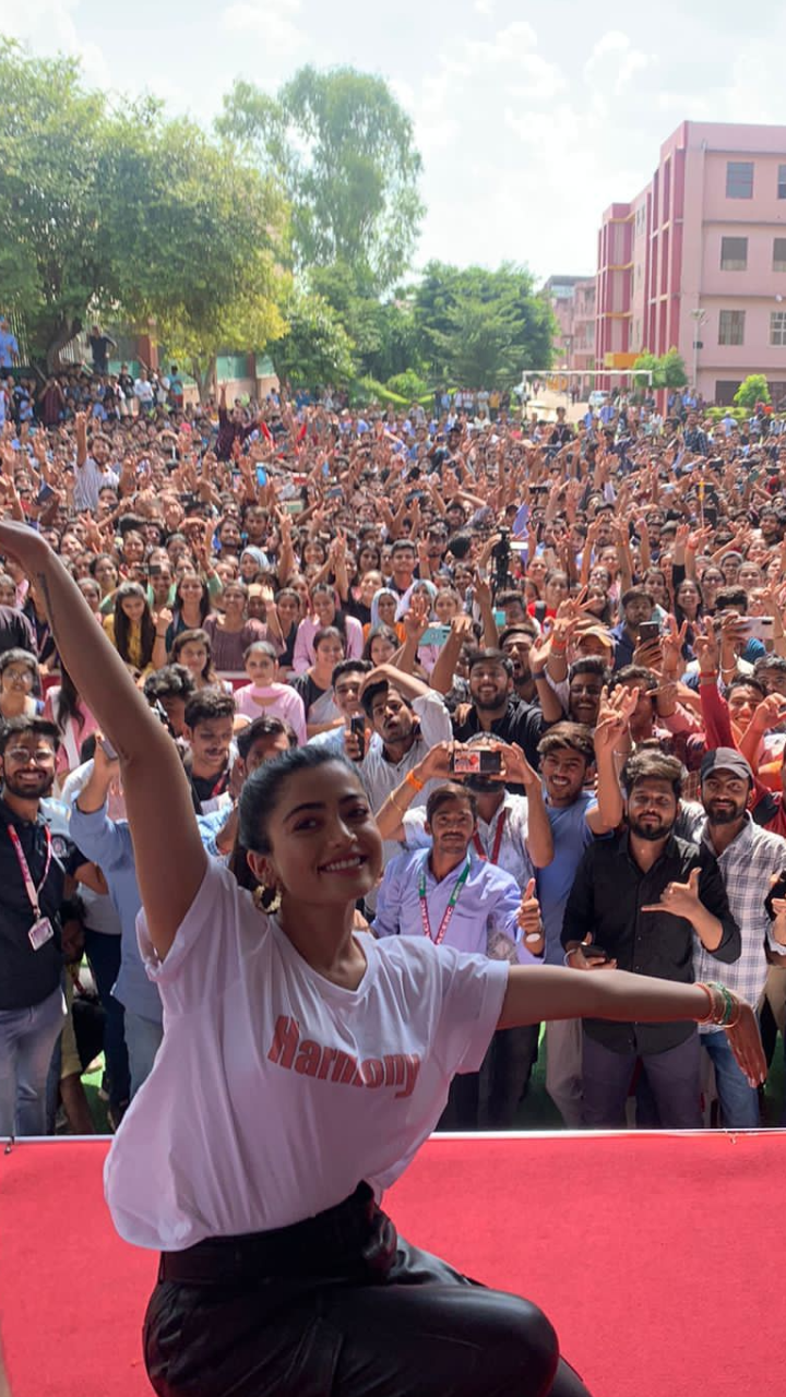 प्रमोशन के दौरान एक्ट्रेस को फैंस द्वारा काफी प्यार मिला रहा है। तस्वीर में रश्मिका के पीछे लोगों का हुजूम देखा जा सकता हैं।