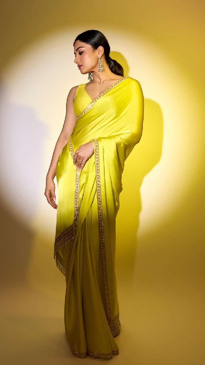 अगर आप सिंपल लुक चाहती हैं तो आप एक्ट्रेस की इस साड़ी लुक को कैरी करें। प्लेन साड़ी की बॉर्डर में मिरर वर्क किया गया है।