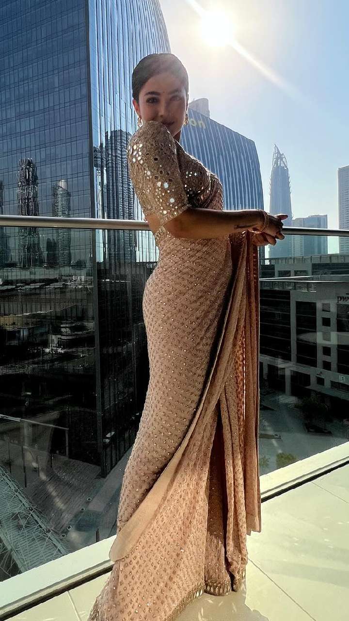 फिलहाल फ्लावर प्रिंटेड आउटफिट्स काफी ज्यादा ट्रेंड में चल रहे हैं। आप इस तरह की मिरर वर्क साड़ी भी कैरी कर सकती हैं और लुक को स्पेशल बना सकती हैं।