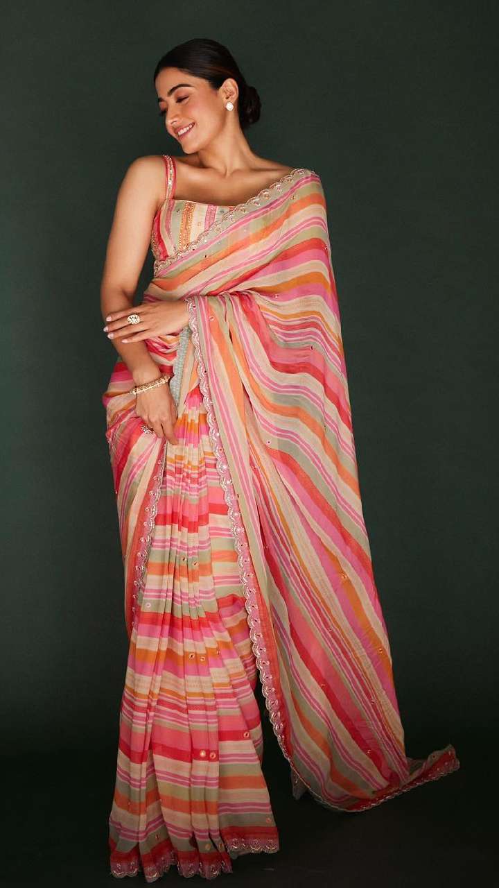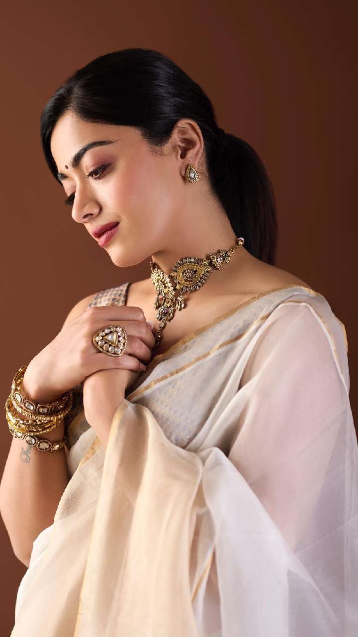 रश्मिका मंदाना के पास हर तरह के आउटफिट्स का शानदार कलेक्शन है। आज हम आपको उनके शानदार साड़ी लुक्स दिखाने जा रहे हैं।