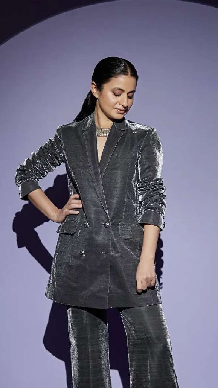 डीवा शाइन ब्लेजर और पैंट पहने अपने इस फॉर्मल लुक में बेहद स्टनिंग लग रही है।