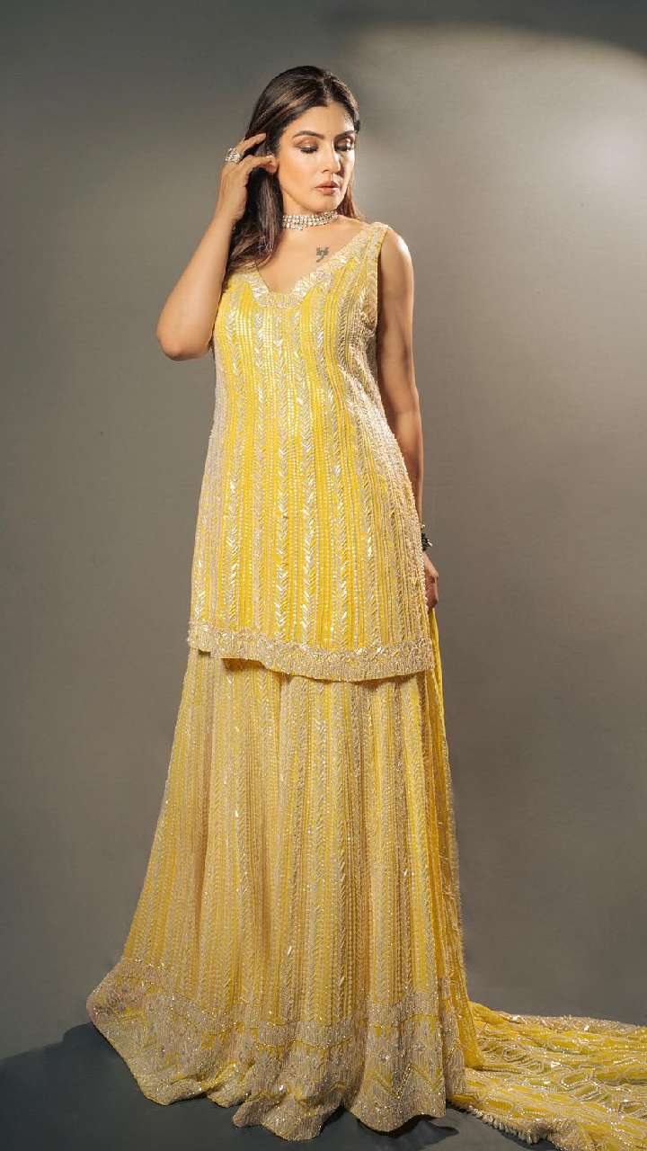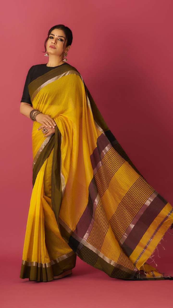 येलो कलर की कॉटन की साड़ी में रवीना टंडन का लुक काफी ज्यादा शानदार लग रहा है। 40 प्लस पर इस तरह की साड़ी बहुत सुंदर लगेगी।