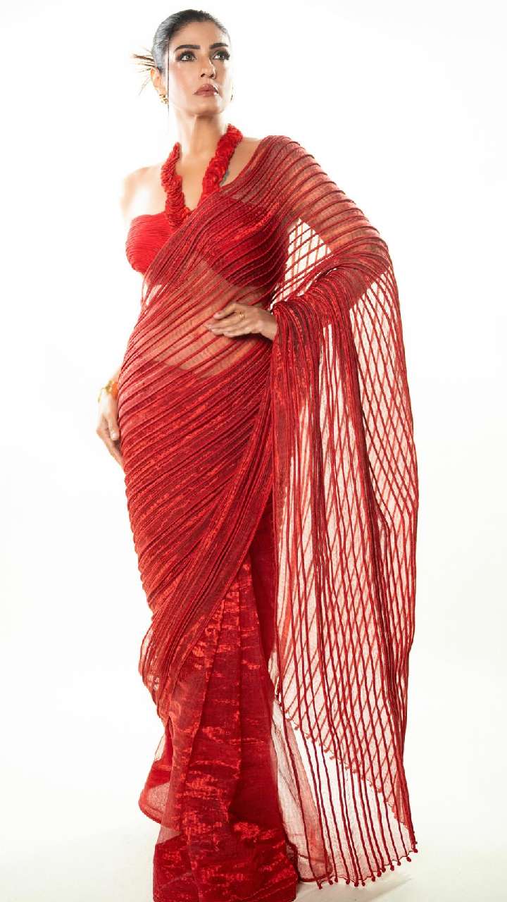 रवीना टंडन सोशल मीडिया पर काफी ज्यादा एक्टिव रहती हैं। हाल ही में एक्ट्रेस ने रेड कलर की साड़ी में हॉट लुक शेयर किया है।