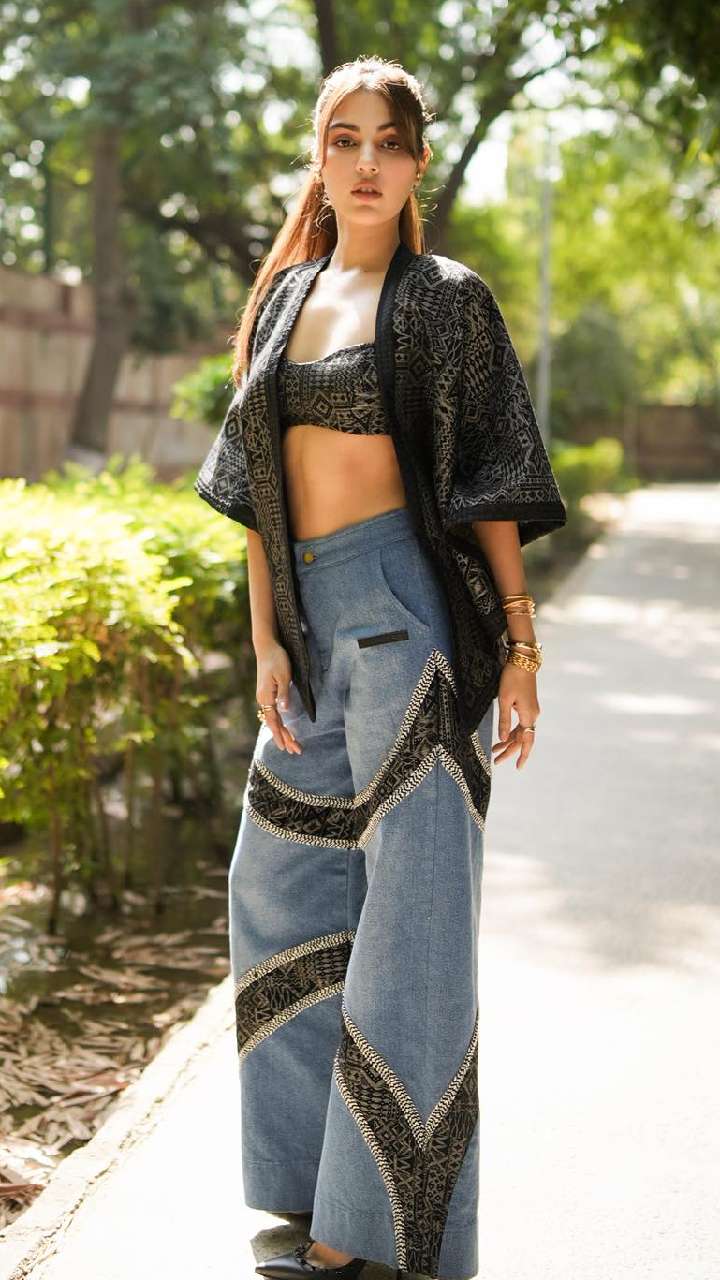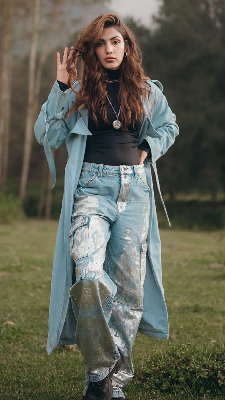 आजकल डेनिम लुक बेहद ट्रेंड कर रहा है। यंग गर्ल्स बोल्ड न्यूड मेकअप, कर्ली हेयर स्टाइल और स्ट्रेट हेयर स्टाइल के साथ लुक को अट्रैक्टिव बनाने के लिए कैरी कर सकती हैं।