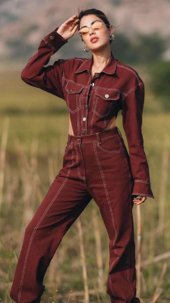 यंग गर्ल्स कॉलेज और नॉर्मल हैंगआउट पर हाइलाइट होने के लिए एक्ट्रेस के आउटफिट को कॉपी कर सकती हैं। यह लुक आपकी पर्सनैलिटी को बोल्ड और बॉसी दिखाएगा। साथ ही, गोल्डन चंकी इयररिंग्स लुक को अट्रैक्टिव बनाएगा।