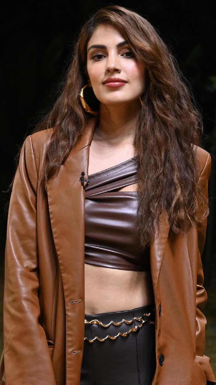 Rhea ने स्टाइलिश लुक के लिए शिमरी लेदर आउटफिट के बोल्ड मेकअप कैरी किया है। आप नॉर्मल हैंगआउट पर हॉट लुक के लिए एक्ट्रेस के इस आउटफिट को पहन सकती हैं।