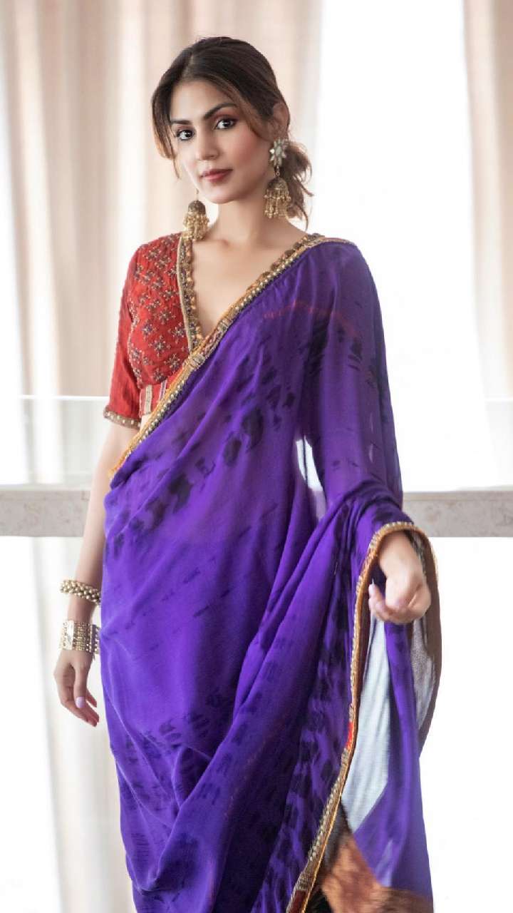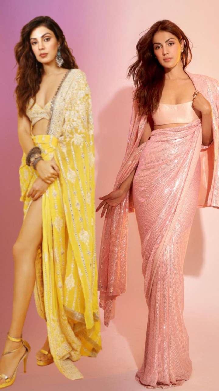 अगर आप अपने लुक में स्टाइल और वेस्टर्न लुक का तड़का लगाना चाहती हैं तो रिया चक्रवर्ती की ये इंडो-वेस्टर्न साड़ी शानदार है।