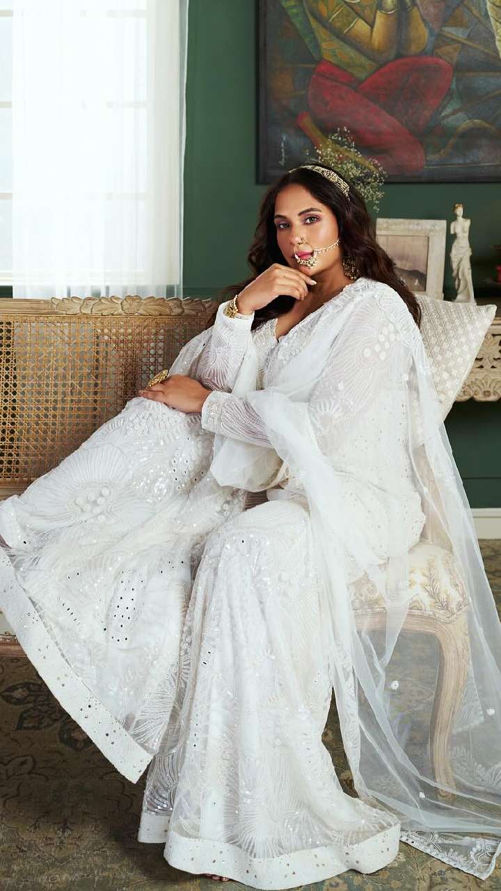 ऋचा चड्ढा का ये क्लासी व्हाइट सूट लुक आपके लुक में चार चांद लगा देगा। आप भी इस तरह के सूट को कैरी कर सकती हैं।