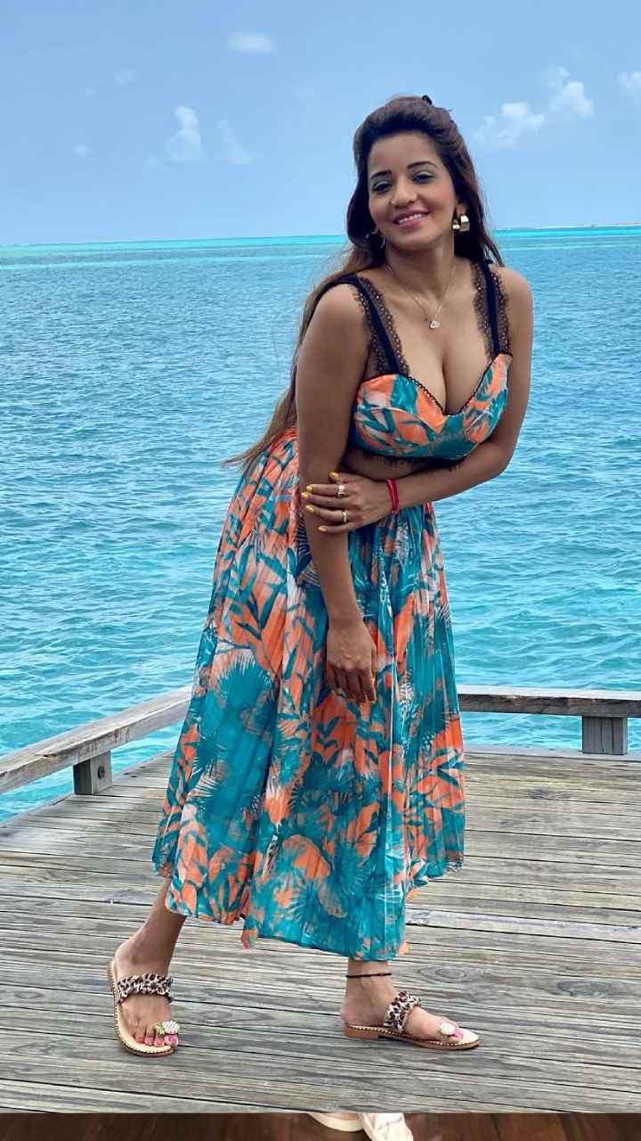 ऋचा मल्टी कलर वन पीस फुल स्लीव ड्रेस में बेहद ब्यूटीफुल और गॉर्जियस लग रही है।