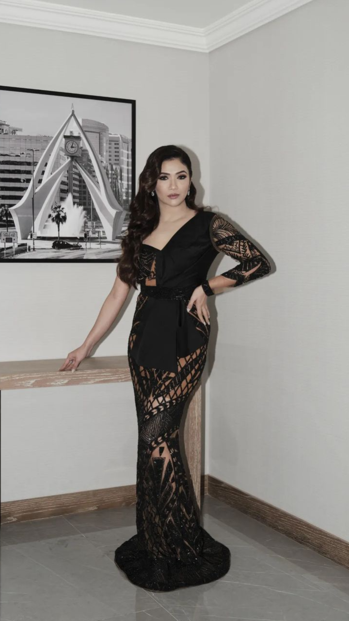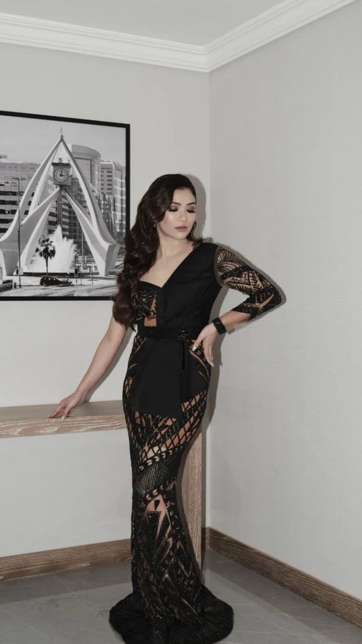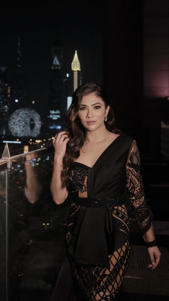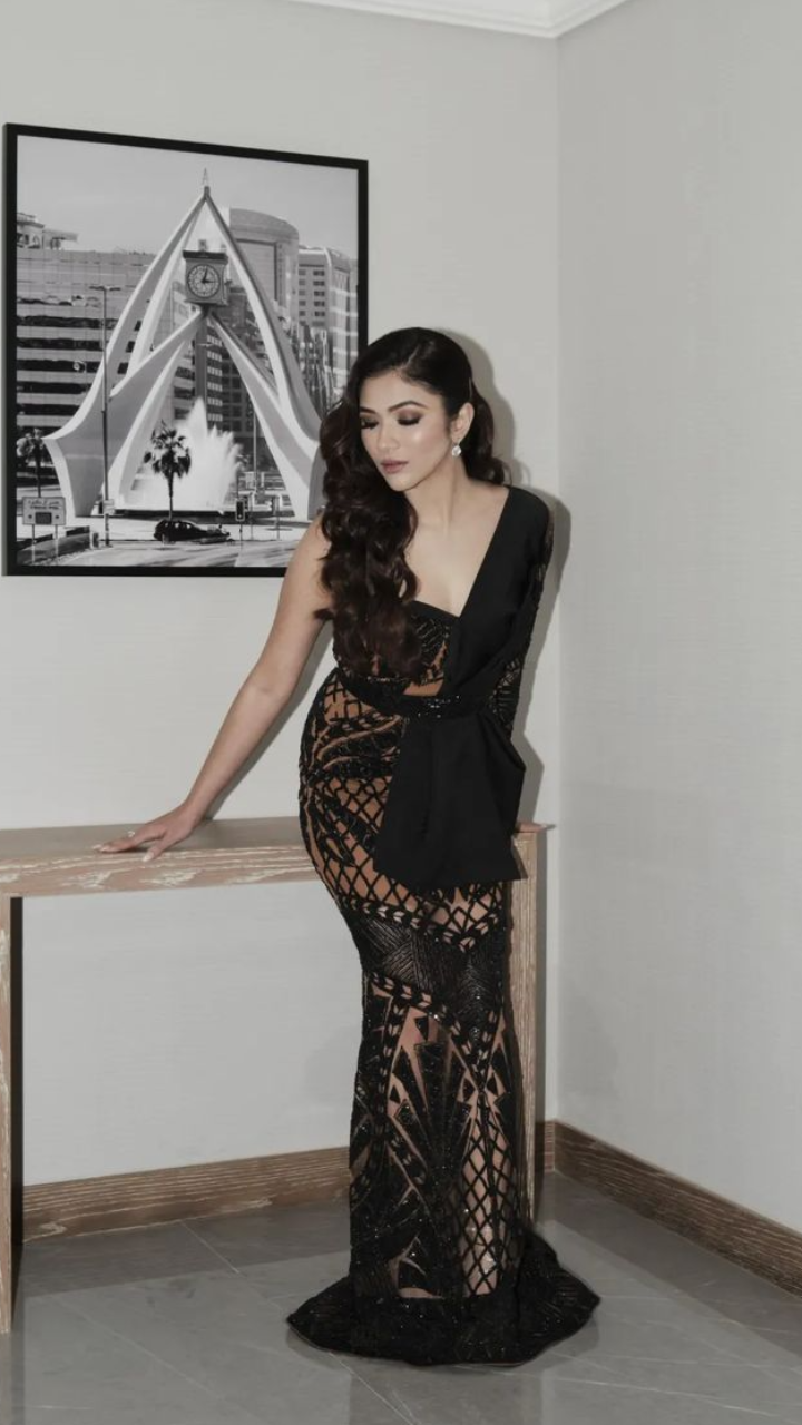 रिद्धिमा पंडित ब्लैक जालीदार गाउन में काफी गॉरजियस दिख रही हैं।