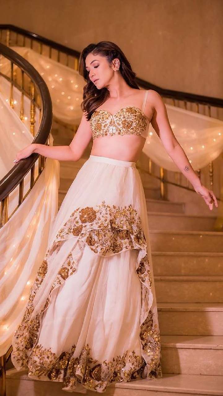 लेटेस्ट फोटोज में रिद्धिमा ने वाइट और गोल्डन कलर का लहंगा कैरी किया हुआ है।