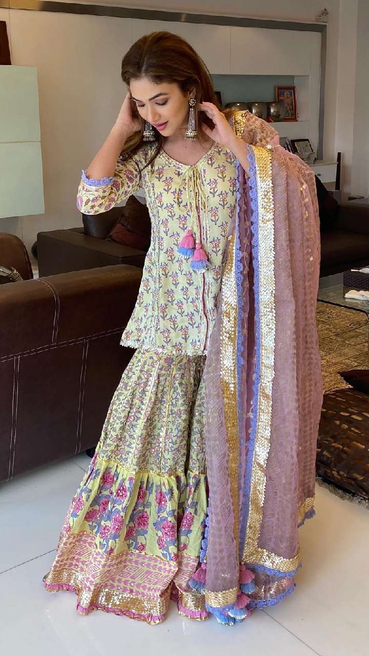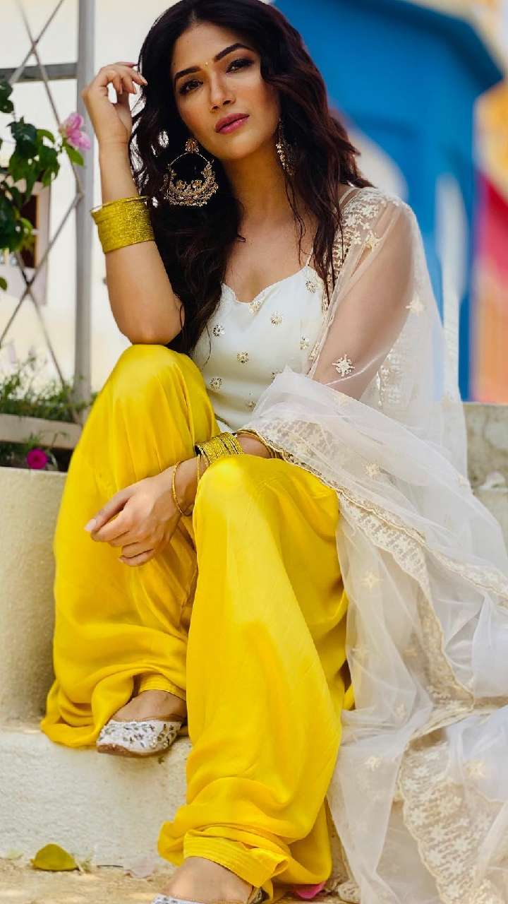 एक्ट्रेस का येलो व्हाइट पटियाला सूट लुक काफी खूबसूरत लुक दे रहा है। इस ऑउटफिट में आप एकदम पंजाबी कुड़ी दिखेंगी।