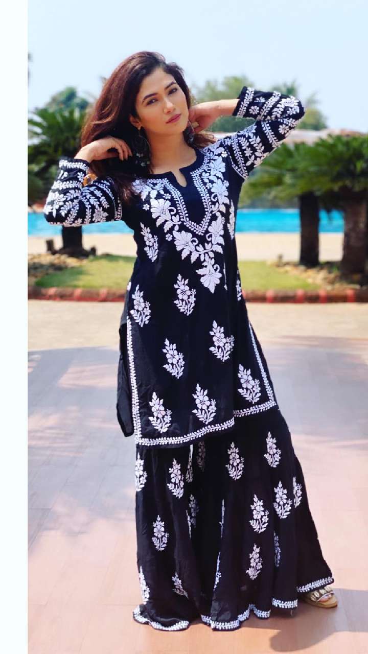 इन दिनों चिकनकारी सूट काफी ट्रेंड में हैं। ऐसे में आप इस ब्लैक चिकन वर्क सूट को भी ट्राई कर सकती हैं।