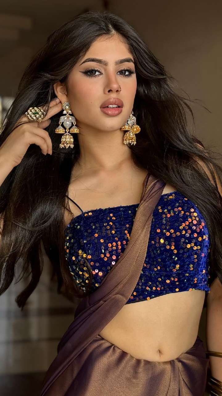 आप भी अपनी किसी साड़ी के साथ इस तरह के मार्केट से वेलवेट सितारों वर्क वाला नूडल स्ट्रैप ब्लाउज पेयर कर सकती हैं।
