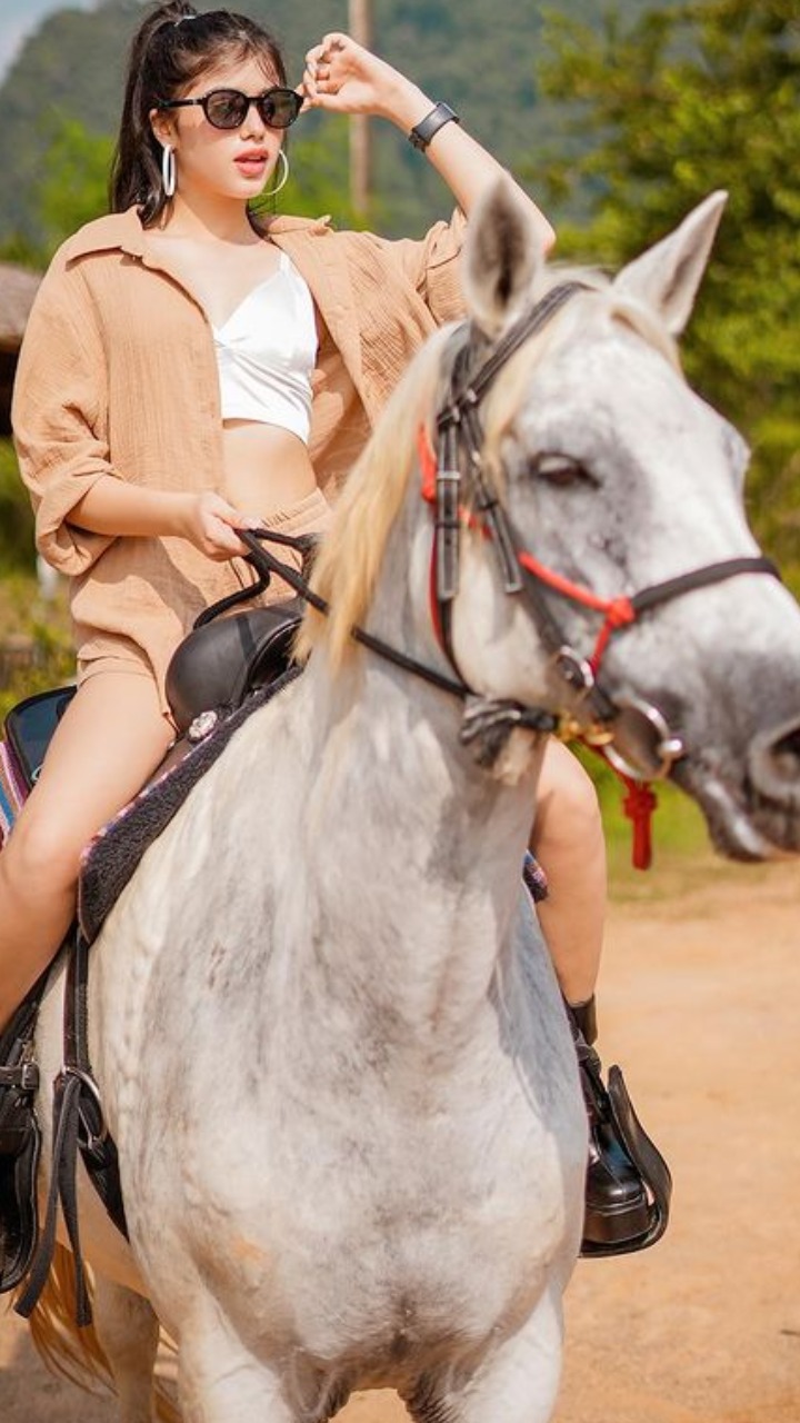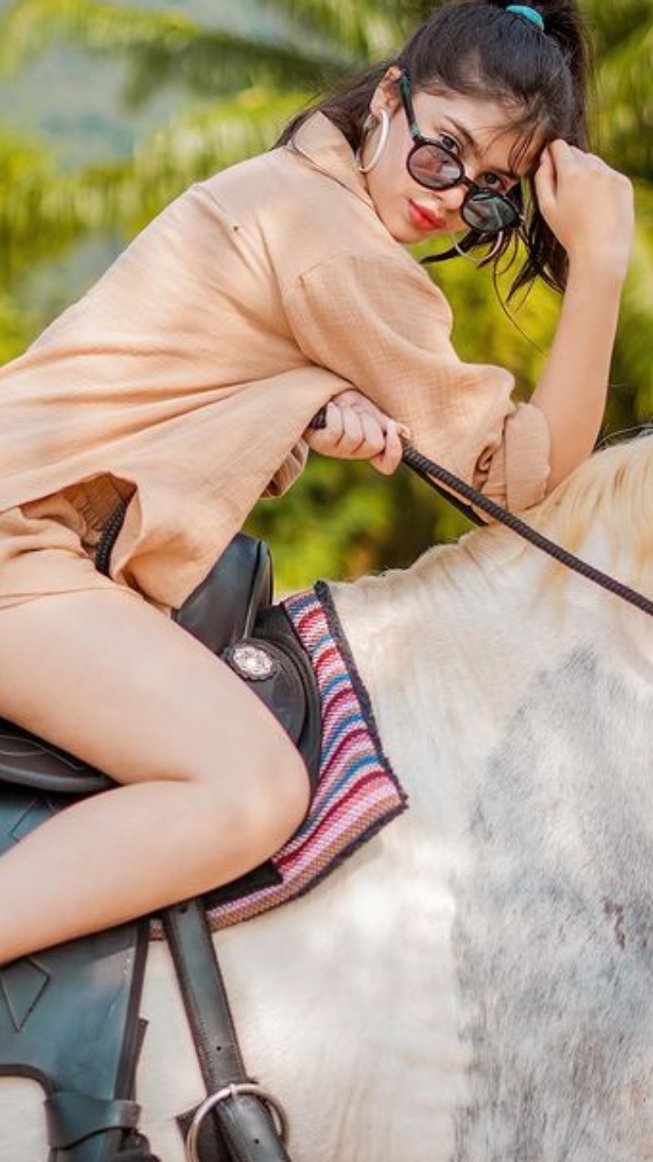 घुड़सवारी के दौरान एक्ट्रेस का यह क्लासी लुक सभी को काफी पसंद आया।