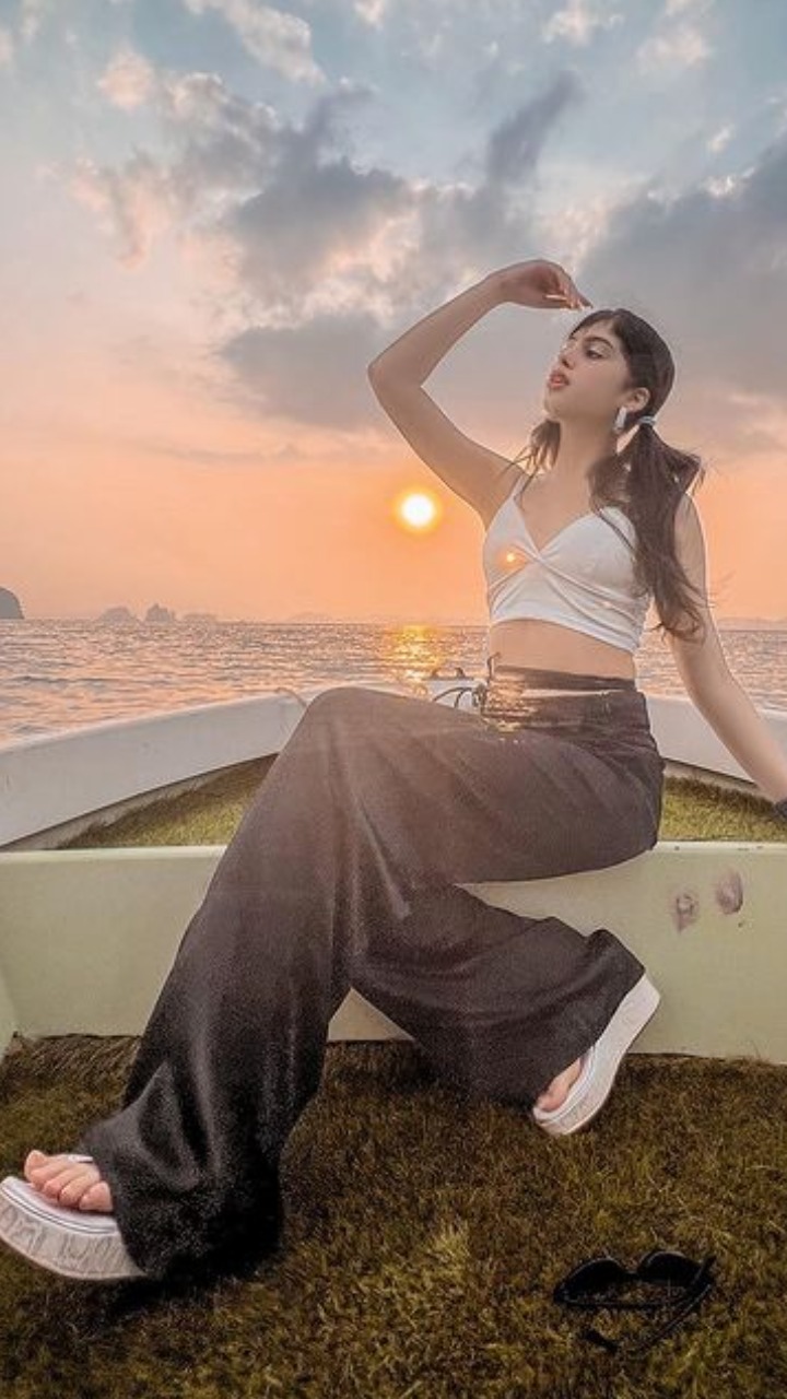 एक्ट्रेस खुले आसमान के निचे बोट पर सनसेट एंजॉय करती दिखाई दे रही हैं।