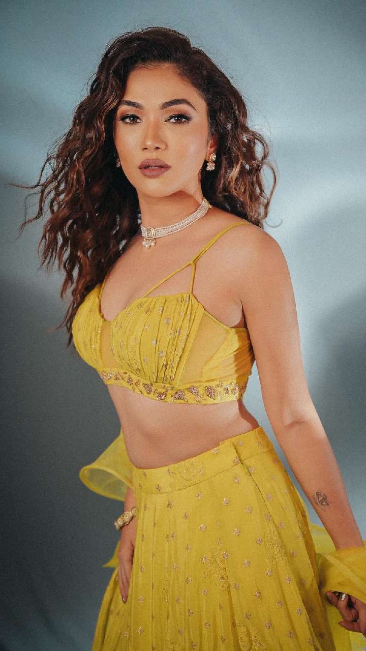 अभिनेत्री ने इंस्टाग्राम पर येलो कलर के लहंगे विद स्टाइलिश चोली में अपना प्रिटी लुक शेयर किया है। इसके साथ रिद्धिमा के कर्ली हेयर काफी सूट कर रहे हैं।