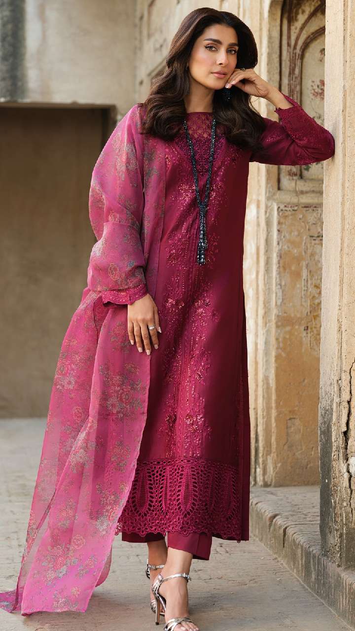 क्या आप शादी के बाद ऑफिस में पहनने के लिए सिंपल और स्टाइलिश लुक देने वाले सूट्स की तलाश कर रही हैं, तो Ayeza का यह पर्पल कलर का सूट बेस्ट ऑप्शन है।