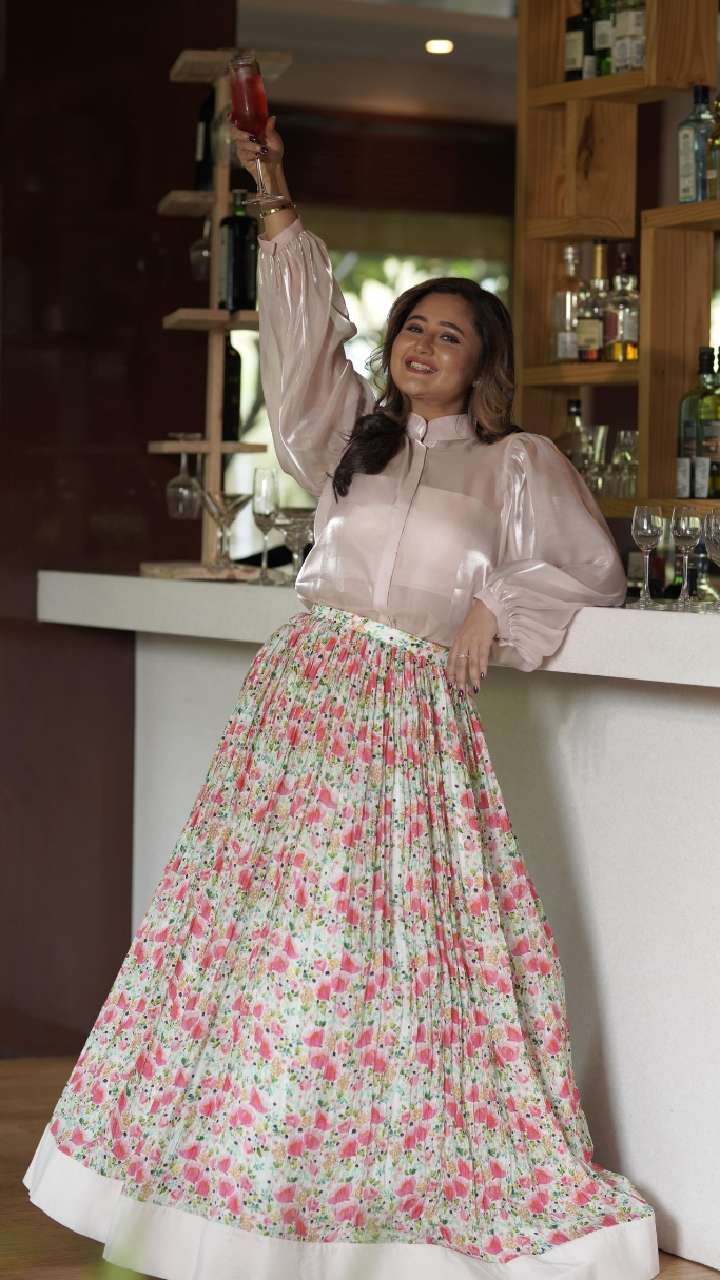 एक्ट्रेस ने सिंपल स्कर्ट के साथ लहंगे को स्टाइल किया है, साथ ही Rashami के डिजाइनर ब्लाउज ने लुक में चार-चांद लगाया है। आप ब्लाउज के जिंस या सिंपल साड़ी के साथ भी स्टाइल कर सकती हैं।