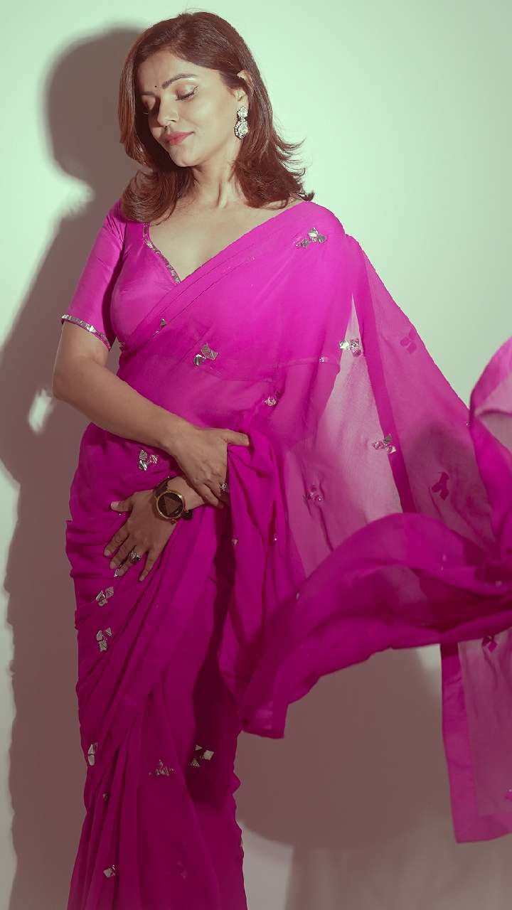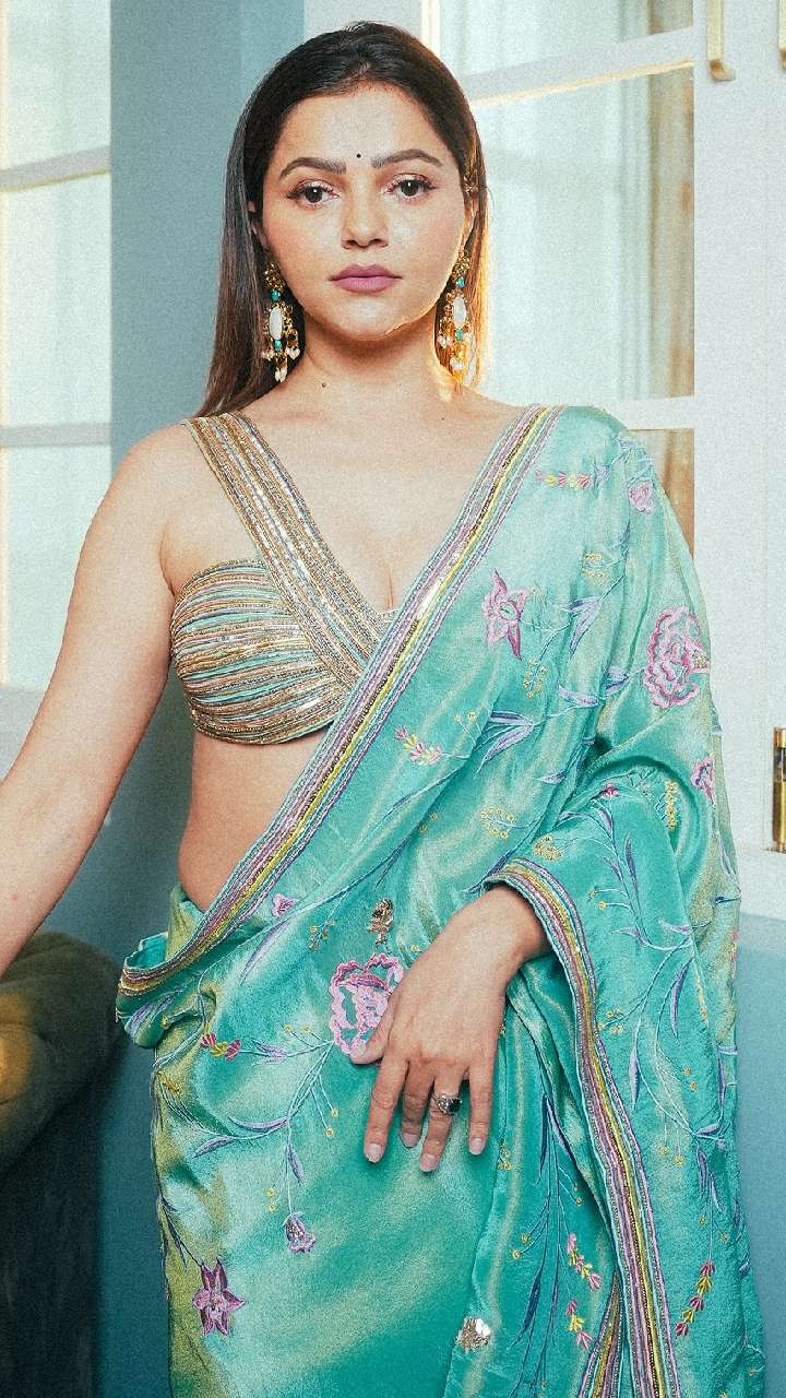 Rubina ने खूबसूरत साड़ी संग स्टाइलिश और डिजाइनर ब्लाउज को कैरी किया हैं, जिसे यंग गर्ल्स कॉलेज पार्टी या शादी में पहनकर ग्लैमरस लुक ले सकती हैं। साथ ही, यह ब्लाउज आपको मेहफिल की शान बना देगा।