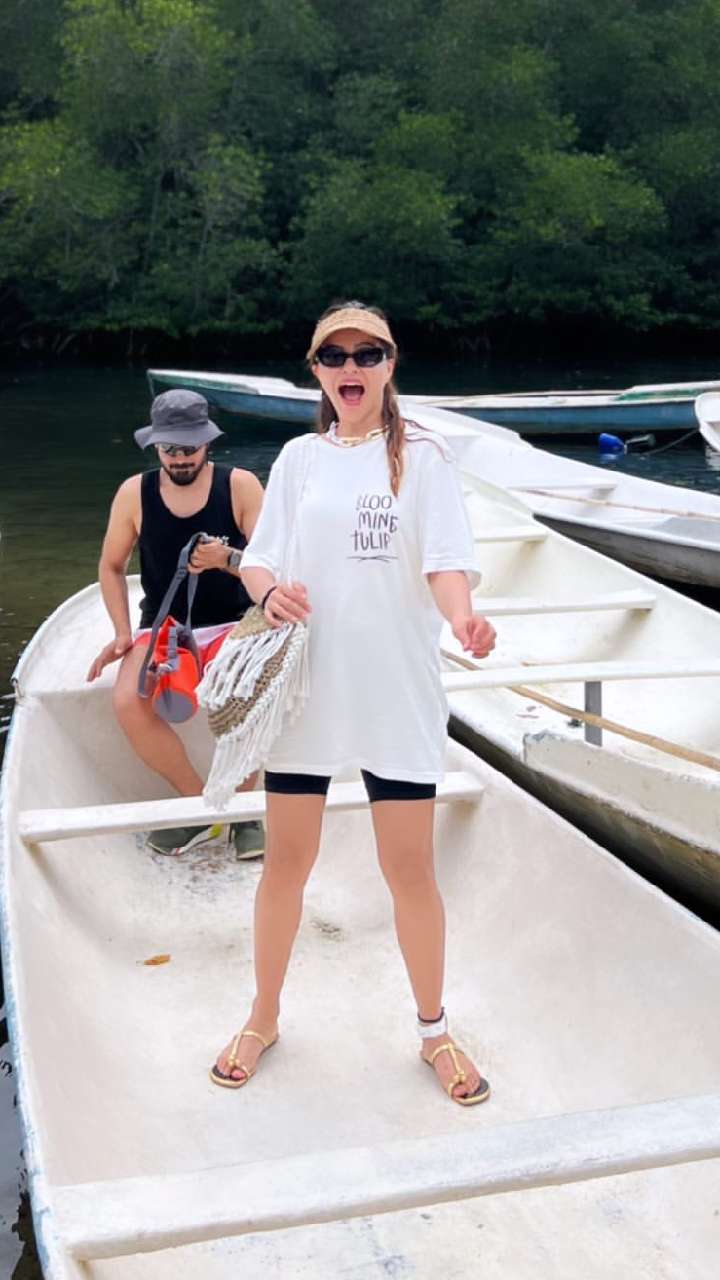 तस्वीर में एक्ट्रेस बोट पर खड़ी होकर बेहद एक्साइटेड पोज देती हुई नजर आ रही हैं।