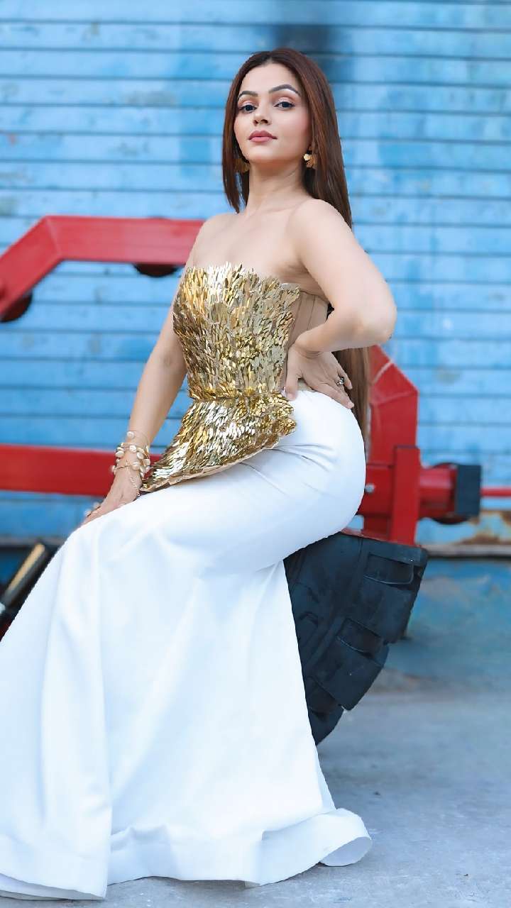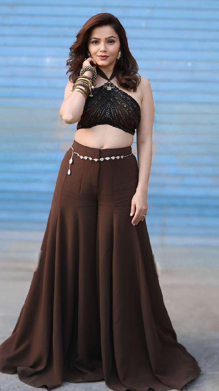 रुबीना दिलैक ने क्रॉप टॉप के साथ स्कर्ट स्टाइल किया है, जिसमें वह अप्सरा जैसी लग रही हैं। इस तरह की ड्रेस महिलाएं किसी खास मौके के लिए चुन सकती हैं।
