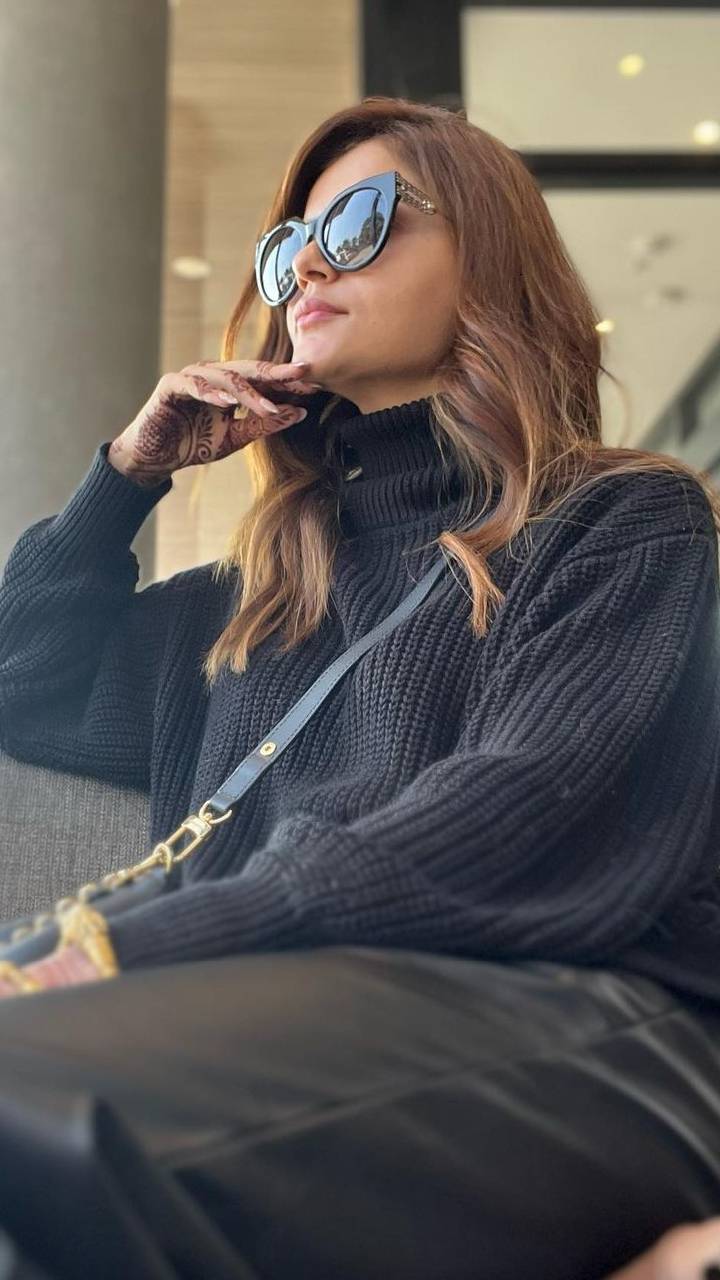 तस्वीर में ब्लैक कलर के हाईनेक स्वेटर में नजर आ रही रुबीना का ये विंटर लुक उनपर काफी जच रहा हैं।