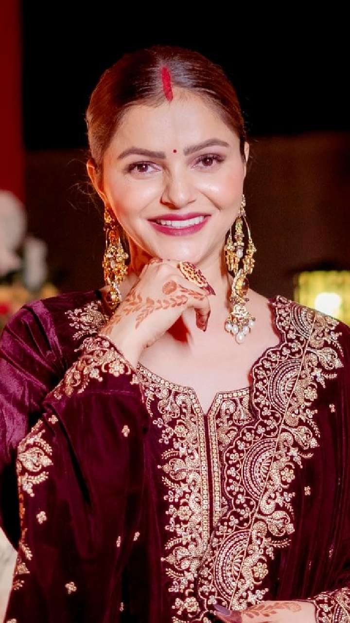 रुबीना ने हाल में इंस्टाग्राम पर मरून कलर के गोल्डन वर्क सूट में अपना लेटेस्ट लुक शेयर किया है। जिसमें डीवा एकदम अप्सरा लग रही हैं।