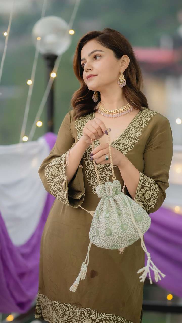 आप चाहे तो इस तरह का सिंपल सोबर एम्ब्रॉयडरी सूट भी पेयर कर सकती हैं। ये आपके लुक को एलिगेंट बना देगा।