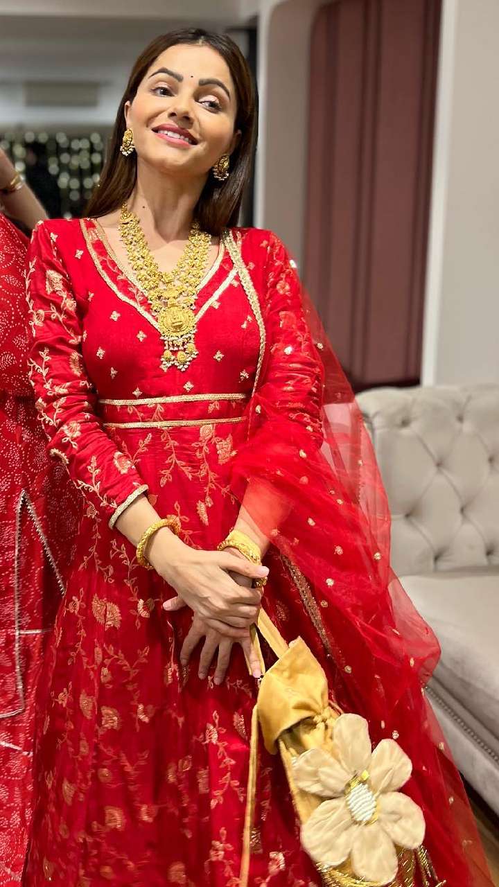 हरियाली तीज के लिए एक्ट्रेस के जैसा रेड प्रिंटेड अनारकली सूट भी बेस्ट ऑप्शन है। इस सूट में आप एकदम अप्सरा नजर आएंगी।