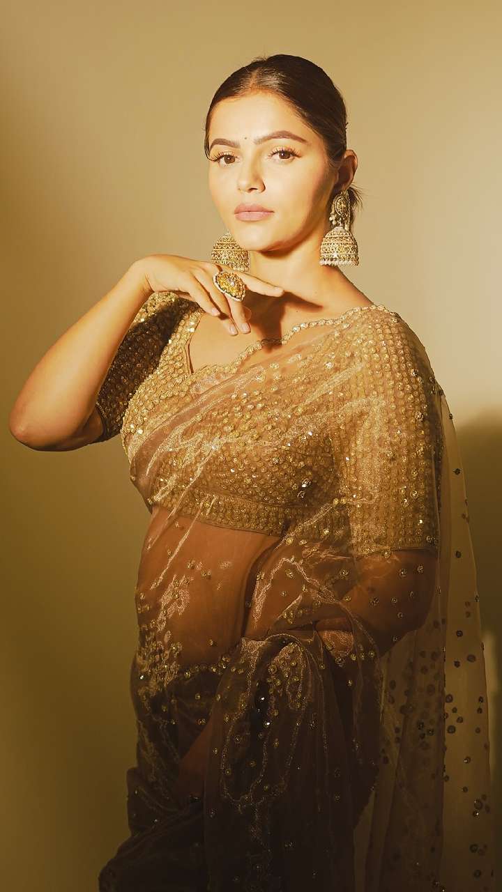 अगर आप किसी पार्टी के लिए साड़ी लुक सर्च कर रही हैं तो आप रूबीना दिलैक के इस ग्लिटर साड़ी लुक से इंस्पिरेशन ले सकती हैं।