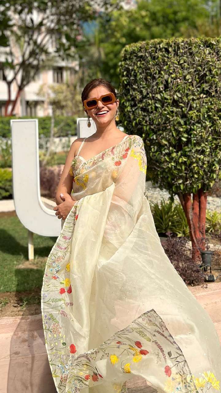फिलहाल ऑर्गेंजा साड़ी भी काफी ज्यादा ट्रेंड में चल रही हैं। आप भी रूबीना दिलैक के इस ऑर्गेंजा साड़ी लुक को कॉपी कर सकती हैं।