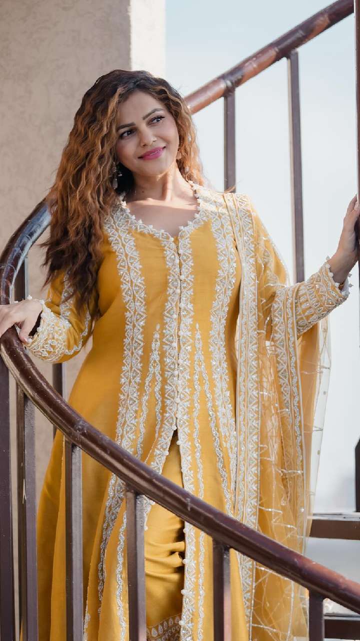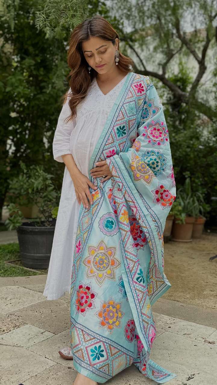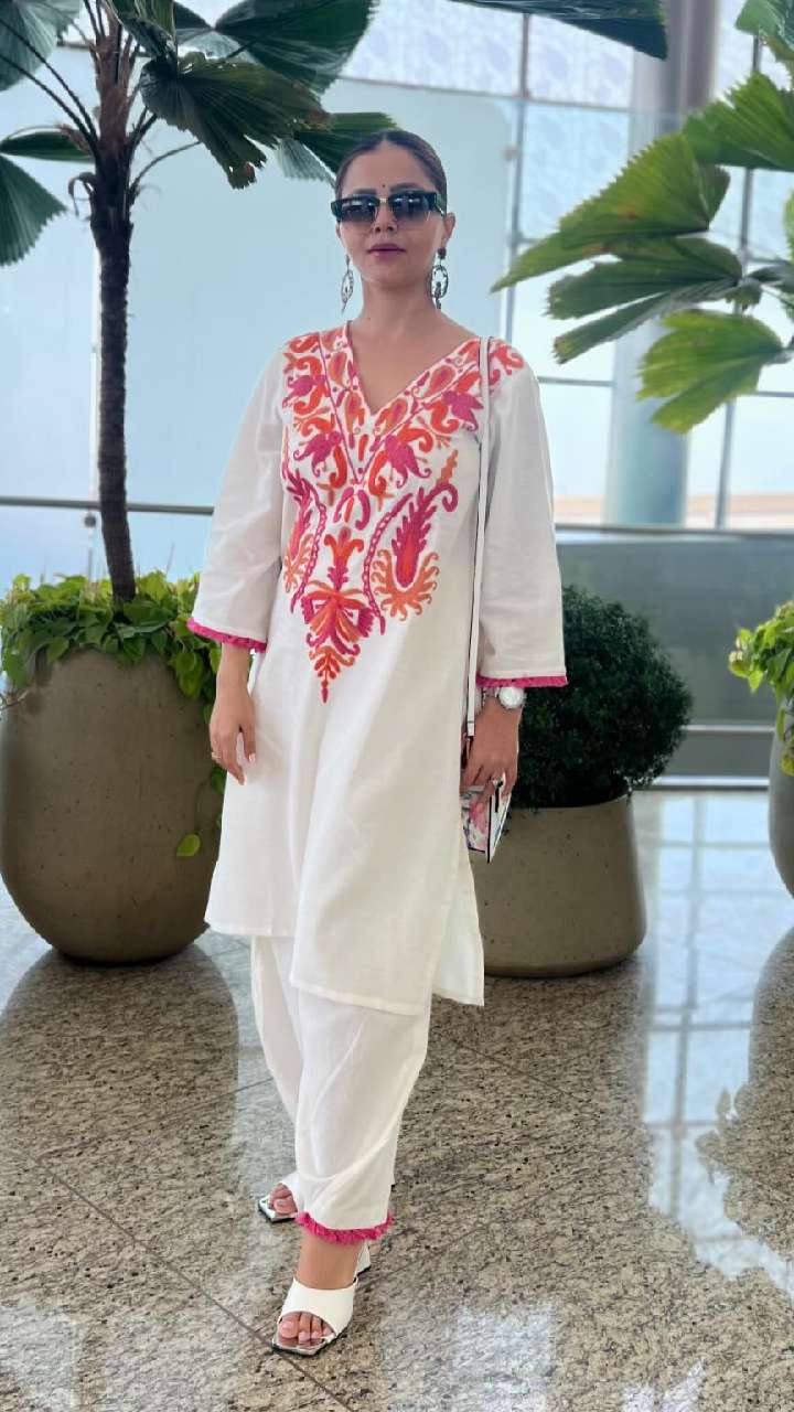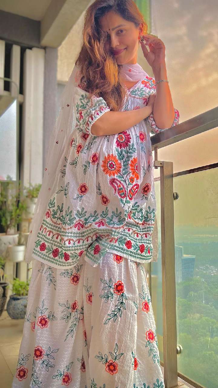 गर्मियों में लाइट कलर बेस्ट रहते हैं। रुबीना का व्हाइट कलर अनारकली सूट के साथ मल्टीकलर दुपट्टा लुक खूबसूरत लग रहा है।