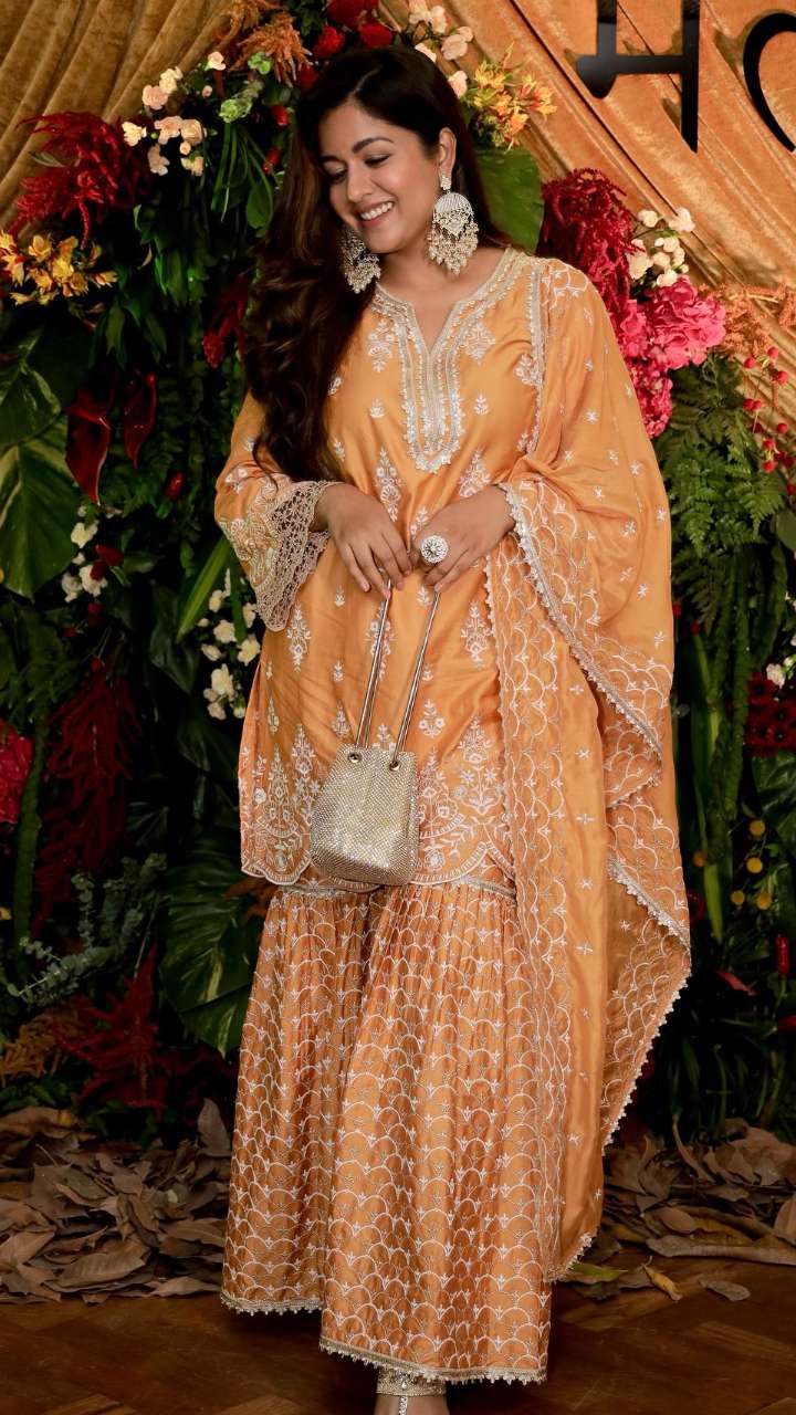 फिलहाल शरारा पैटर्न सूट डिजाइन काफी ज्यादा ट्रेंड में चल रहे हैं। आप भी रुबीना दिलैक की तरह ही व्हाइट शरारा पहन सकती हैं।