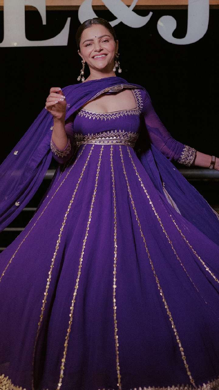 आप रुबीना दिलैक की तरह ही अनारकली सूट भी पहन सकती हैं। ब्लू कलर के इस अनारकली सूट में एक्ट्रेस बहुत प्यारी लग रही हैं।