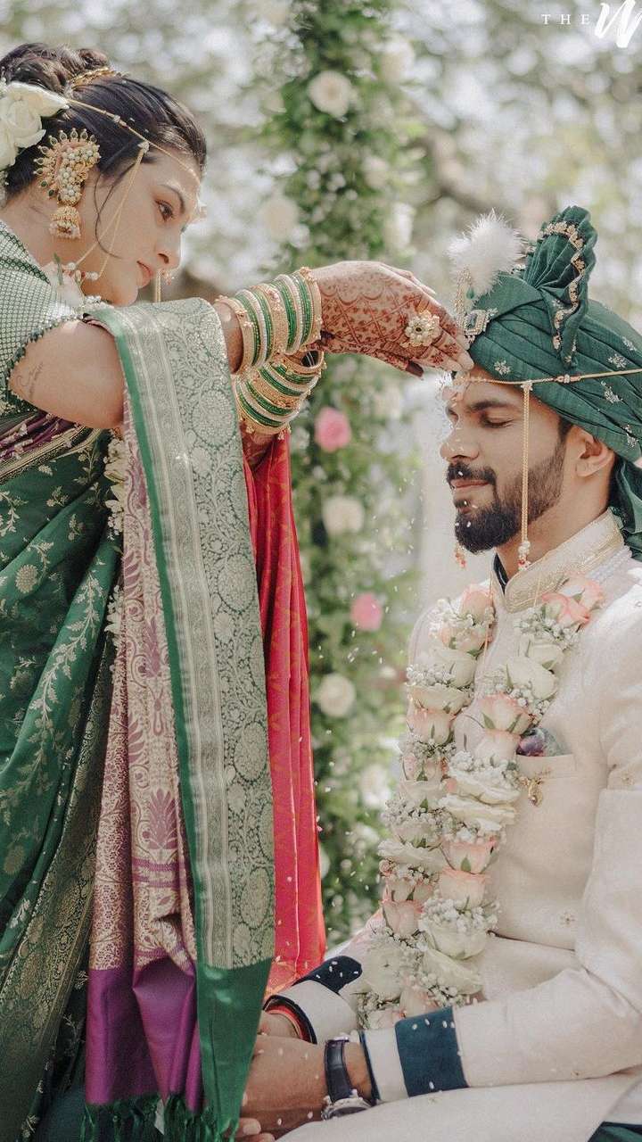 एक तस्वीर में चेन्नई के धाकड़ बल्लेबाज शिवम दुबे अपनी पत्नी के साथ नजर आ रहे हैं। ऋतुराज की शादी की तस्वीरें सोशल मीडिया पर वायरल हो रही है।
