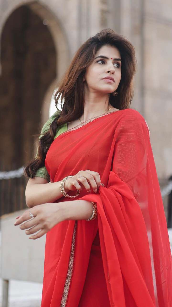 रेड कलर की साड़ी में साक्षी मलिक का लुक काफी ज्यादा हॉट लग रहा है। रेड कलर की साड़ी में व्हाइट मोती से वर्क किया गया है।