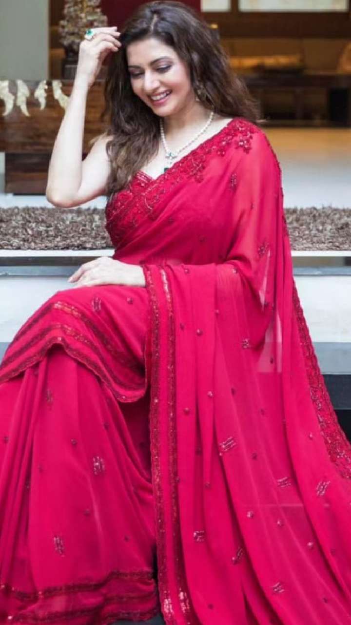 एक्ट्रेस का ये रेड साड़ी लुक बेहद खूबसूरत है।