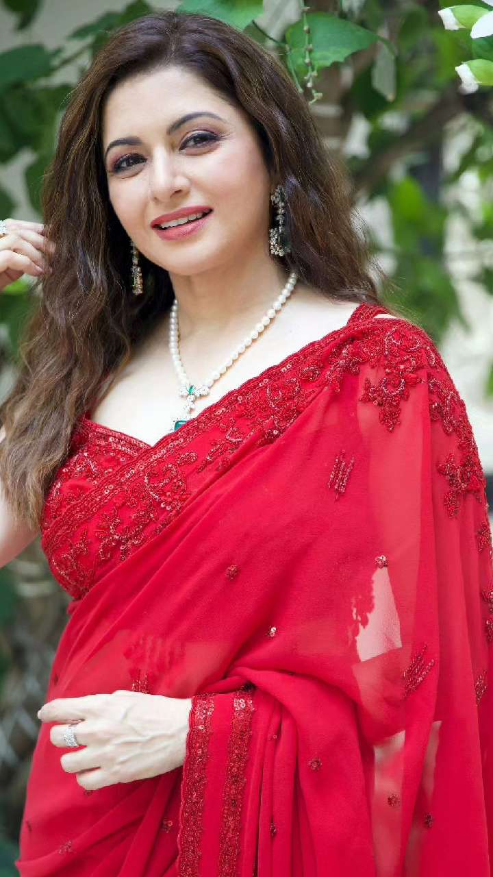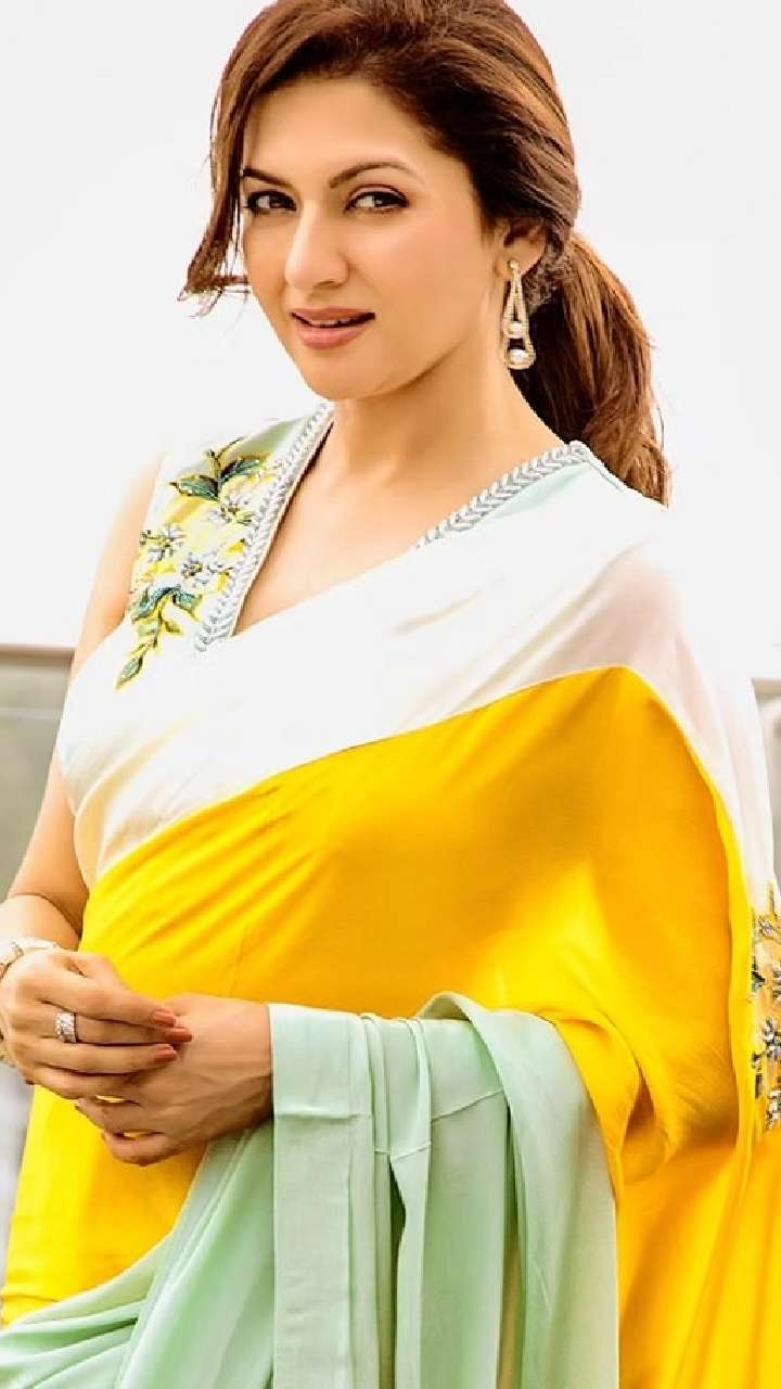 प्लेन साड़ी के साथ हेवी वर्क ब्लाउज का पेयर काफी ट्रेंड में रहता है। एक्ट्रेस का ये लुक काफी अट्रैक्टिव है।