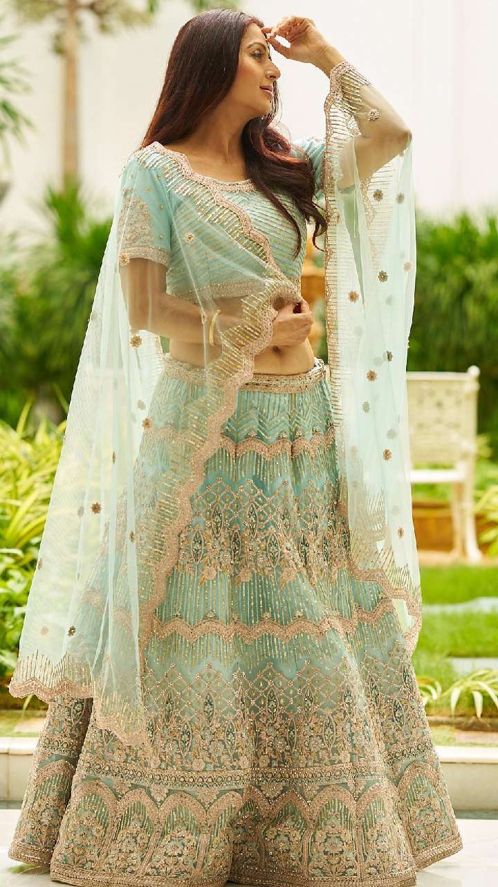 खास की शादी में शानदार लुक के लिए ऐसे एंब्रॉयडरी लहंगा को चुन सकती हैं। ऐसे लहंगा में एक्ट्रेस का लुक बेहतरीन नजर आ रहा है।