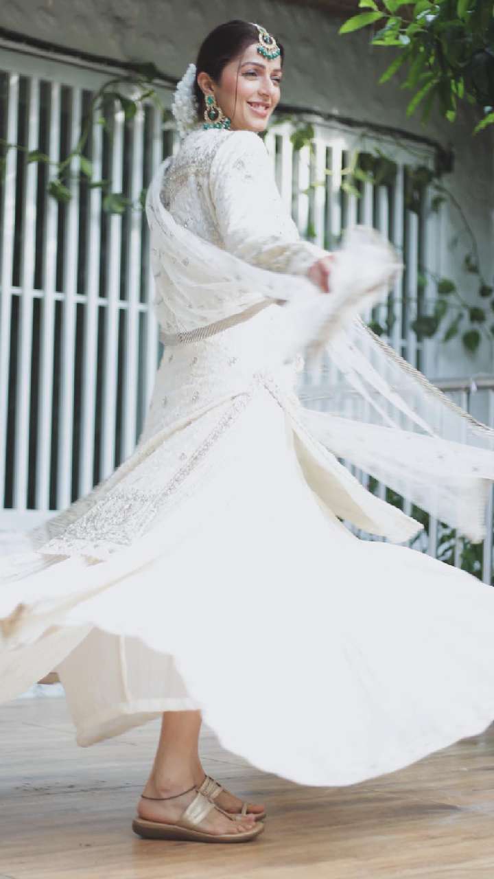 सलमान की एक्ट्रेस ने व्हाइट कलर का शरारा सूट कैरी किया है, जिसमें वह अप्सरा जैसी लग रही हैं। उनके ये लुक 46 प्लस महिलाएं कॉपी करके 26 जैसी नजर आ सकती हैं।