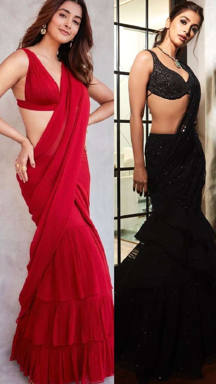 इस रेड रफल साड़ी में एक्ट्रेस बेहद हॉट अंदाज में नजर आ रहीं हैं। आप एक्ट्रेस की इस साड़ी को कॉकटेल पार्टी में कैरी कर सकती हैं।