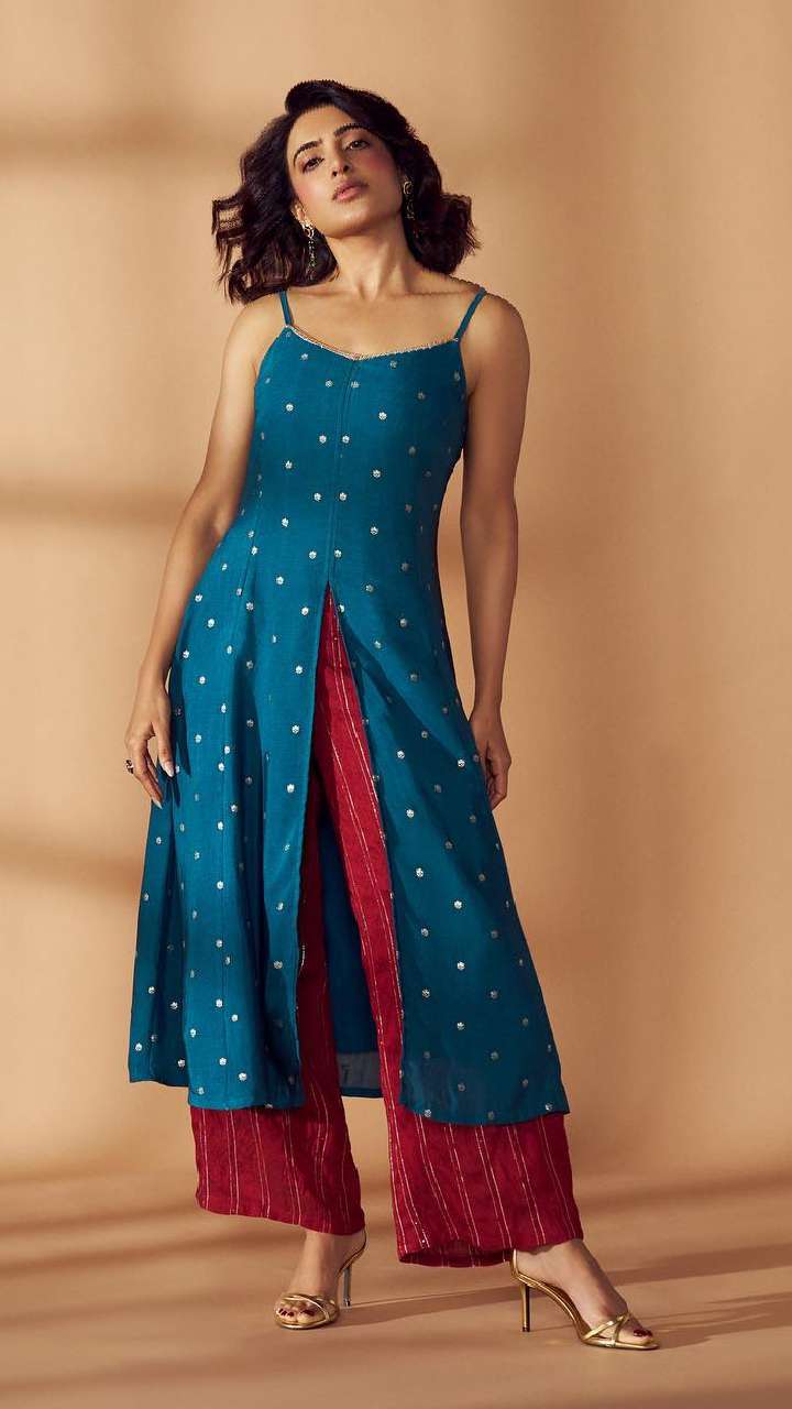 अगर आप ऑफिस गर्ल हैं तो आप सामंथा रुथ प्रभु का ये आउटफिट ऑफिस में कैरी कर सकती हैं। इस तरह की ड्रेसेज फिलहाल बहुत ट्रेंड में चल रही हैं।