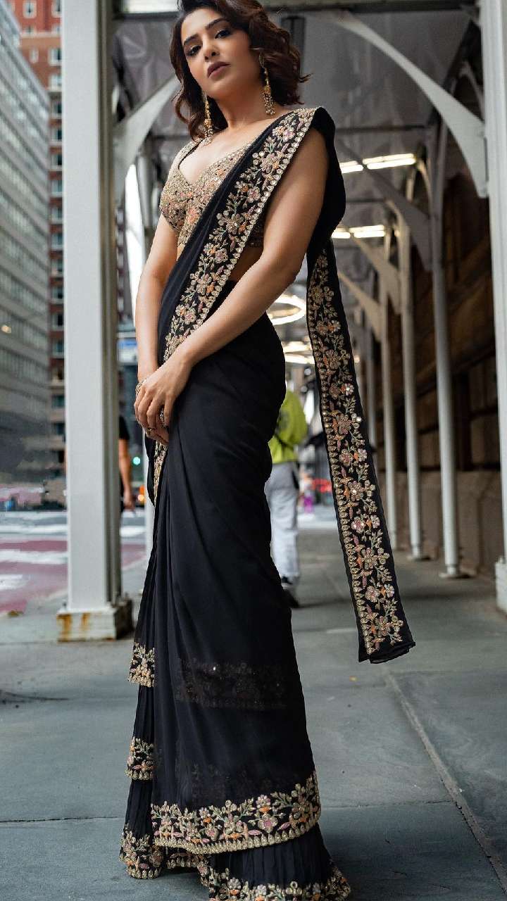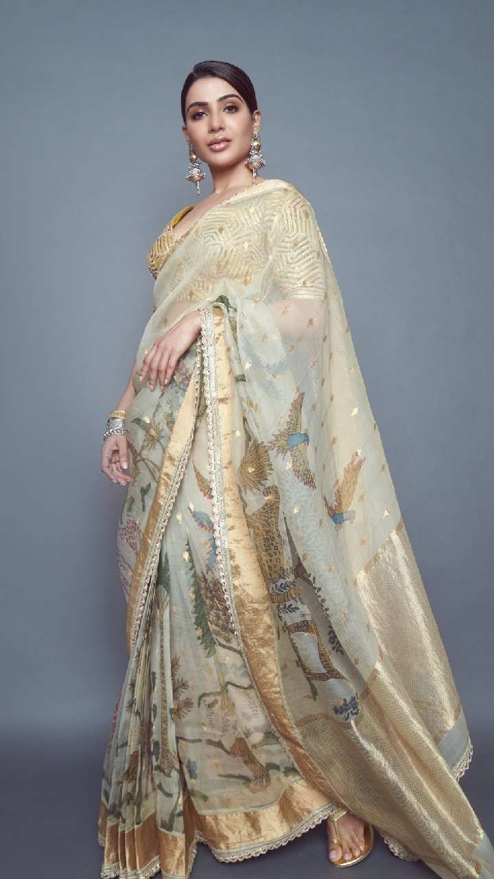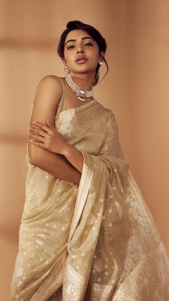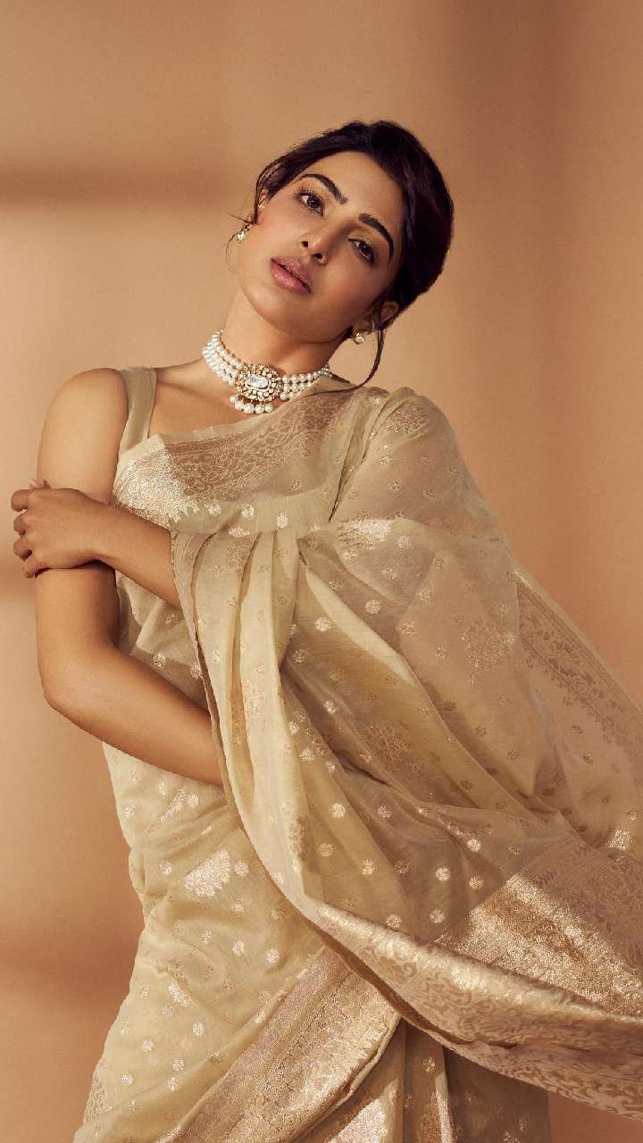 सामंथा ने अपने सोशल मीडिया पर लेटेस्ट साड़ी लुक शेयर किया है। ब्यूटीफुल साड़ी लुक को एक्ट्रेस ने चोकर के साथ पेयर किया है।