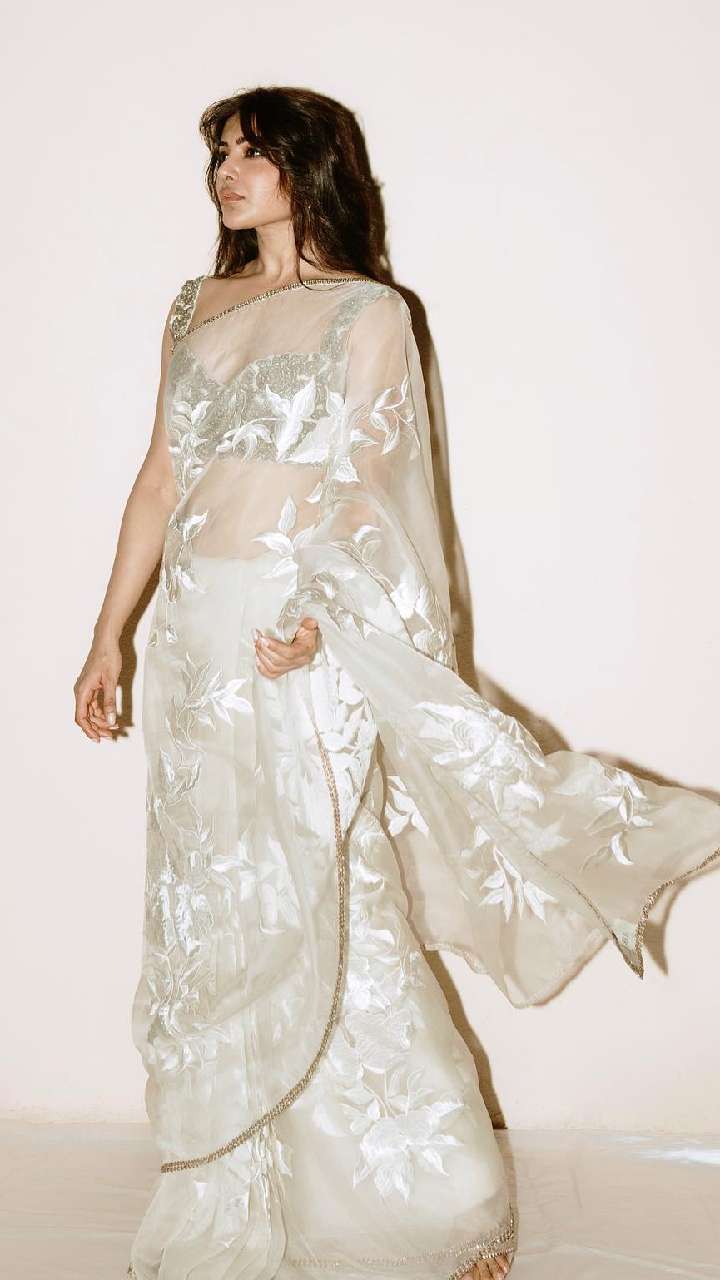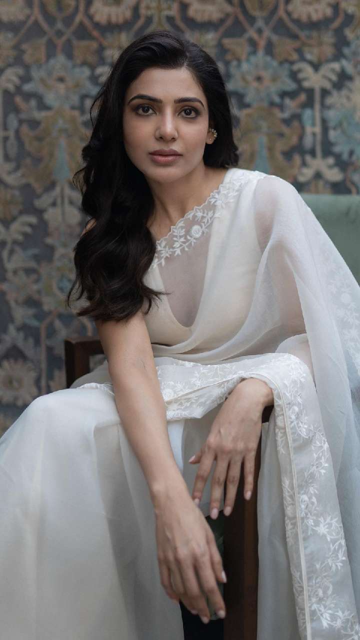 सामंथा प्रभू के पास व्हाइट साड़ी का काफी शानदार कलेक्शन है। आप भी उनके इस लुक को कैरी कर सकती हैं।
