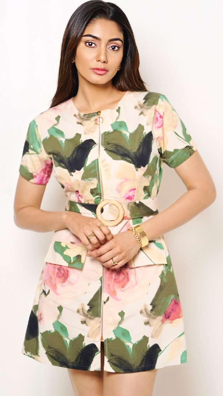 फ्लावर प्रिंटेड शॉर्ट ड्रेस में सना मकबूल काफी ज्यादा क्यूट लग रही हैं। आप इस तरह के आउटफिट को पार्टी में कैरी कर सकती हैं।