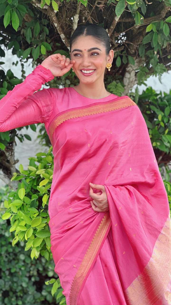 मैजेंटा साड़ी में सना मकबूल का लुक काफी शानदार लग रहा है। इस तरह की साड़ी आप किसी खास मौके पर पहन सकती हैं।