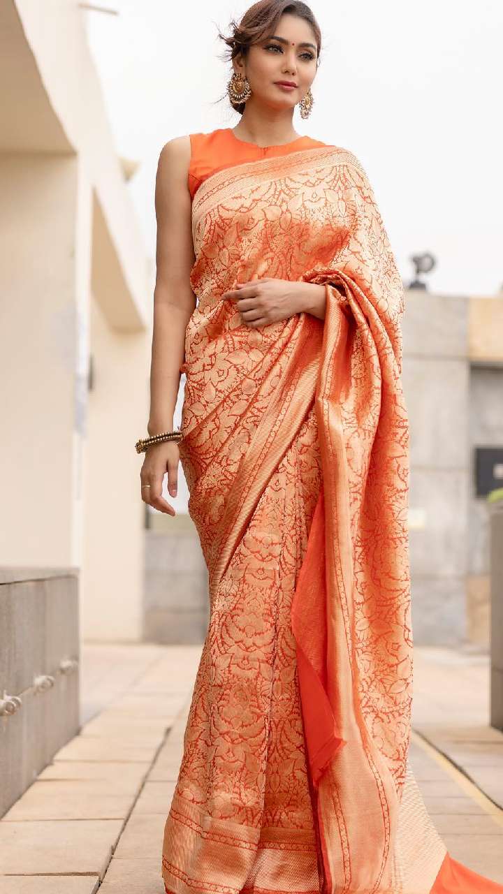 अगर आप अपने लुक को रॉयल बनाना चाहती हैं तो आप इस तरह की सिल्क साड़ी को स्टाइल कर सकते हैं।