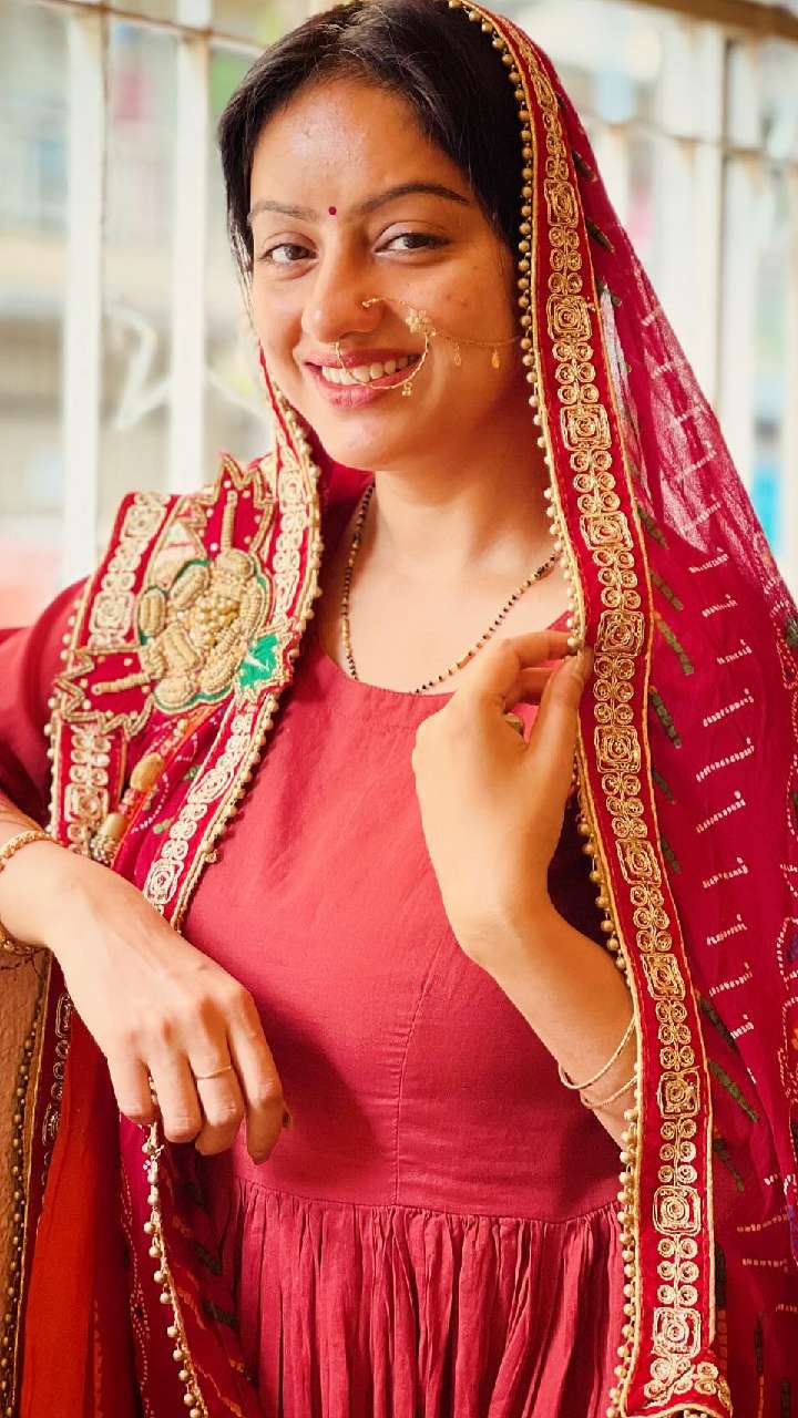 रेड कलर के प्लेन सूट में भी दीपिका सिंह बहुत सुंदर लग रही हैं। आप भी इस तरह के सूट के साथ हैवी वर्क चुन्नी पेयर कर सकती हैं।