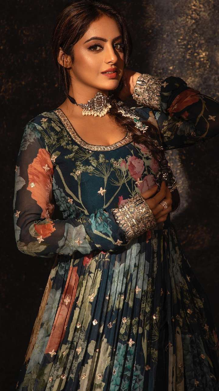 फ्लावर प्रिंटेड अनारकली सूट भी पहन सकती हैं। मानसून में इस तरह का प्रिंट बहुत चलता है। एक्ट्रेस का हर लुक शानदार होता है।